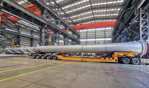 萬德化學(xué)(東營)有限公司拔頭油分離塔設(shè)備出廠運(yùn)輸